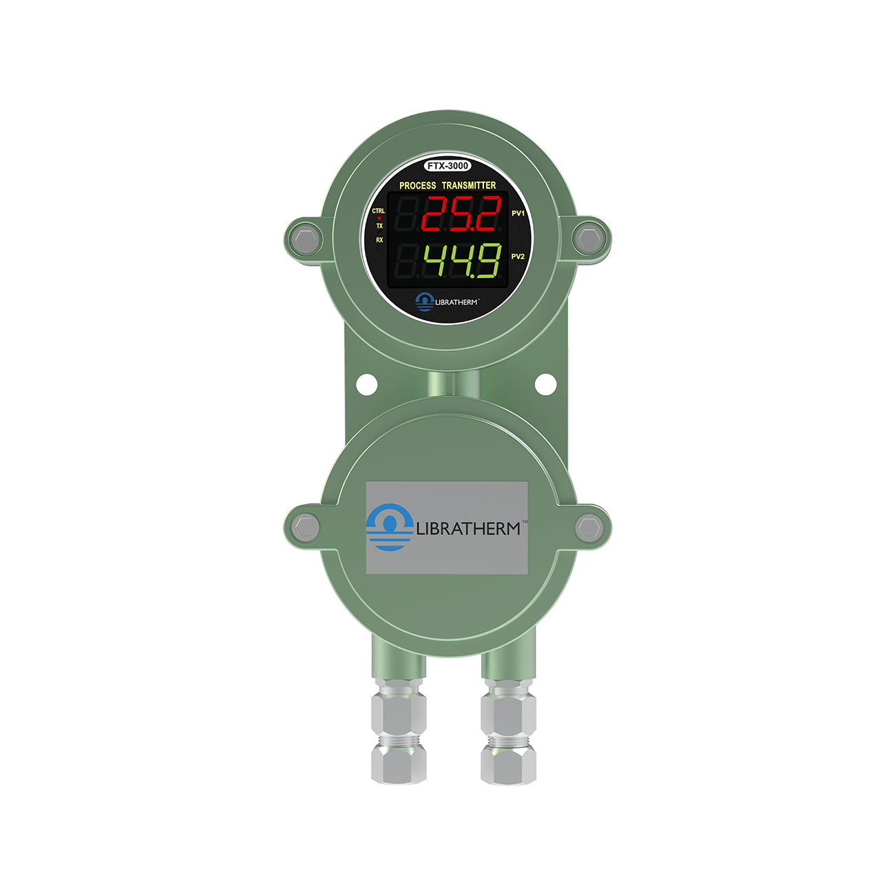 Libratherm offers micro-controller-based Flameproof Temperature and Humidity Transmitter with Display field mount enclosure, for measuring and indicating Temperature and Relative Humidity in the field or in the process. The measured values are converted to the equivalent analog and digital values proportional to the Process Input for long-distance transmission and to interface to the PLC / HMI or DCS or any other field device.